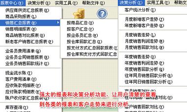 决策分析功能:帮助用户查看月度、年度新增客户走势,且可以同往年同月、日销售回款进行比对,将往年同月客户开发成本进行对比,随时掌握自己的经营状况。