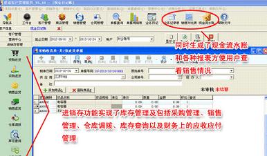 包含了采购收货、采购退货、销售出货、销售退货、仓库调拨、库存查询、收款管理、付款管理功能。让客户软件更贴近采购和销售及财务上的应收应付,便于跟单查询。同时现金流水帐的功能,可以按业务员实际回款情况统计业务员的业绩方便进行考核。