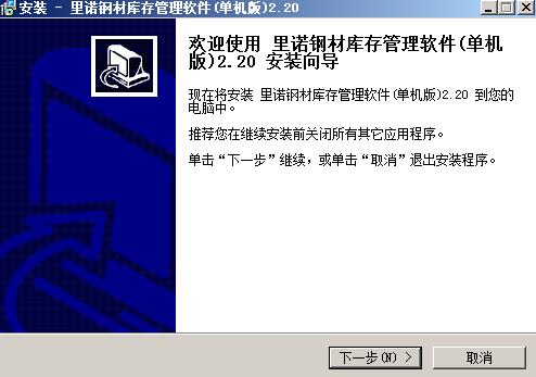 1.下载解压并运行里诺钢材仓库管理软件最新版.exe,点击下一步。