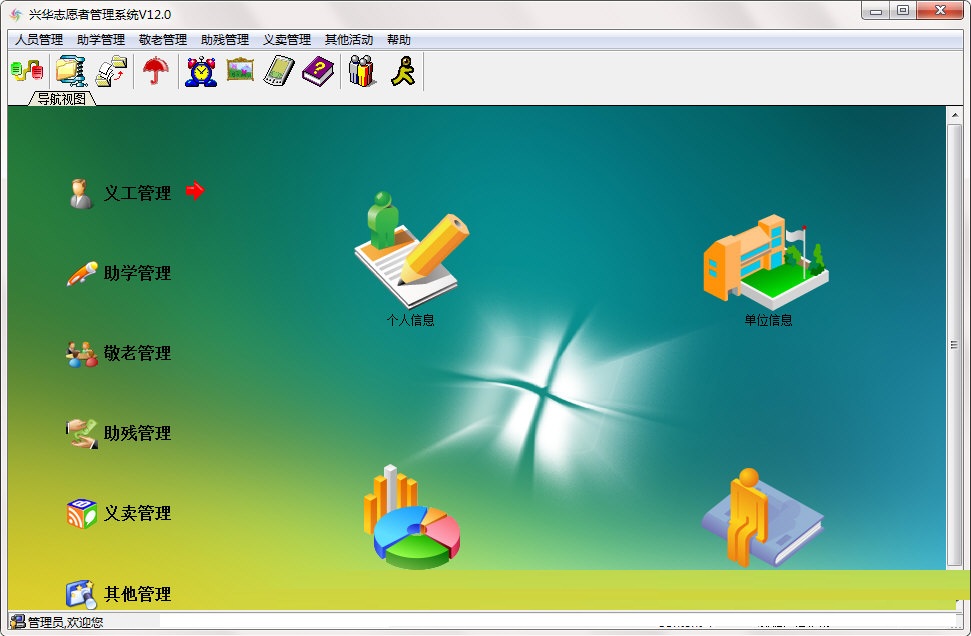 兴华志愿者管理系统最新版是款主要是为了从事志愿者工作人员进行量身打造的人员管理工具,兴华志愿者管理系统最新版内置了为大批量的志愿者们录入个人信息,相关志愿活动,以方便志愿者的统一管理。