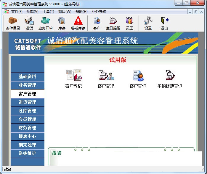 诚信通汽配美容管理系统官方版以管理的科学化、规范化、自动化为目标,通过对汽配维修管理过程的每个环节的电脑追踪和管理,可以使管理人员有效地协调企业中各职能部门的分工合作,合理地调度和使用企业的各种资源,降低工作人员的劳动强度,杜绝人为的疏忽和差错,提高工作效率,从而使得各个环节能够有条不紊地有序地开展工作,使得顾客能够得到快速高效的优质服务。