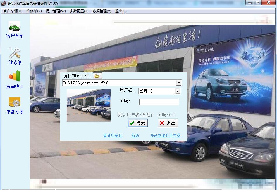 阳光4S汽车售后维修软件是绿色软件,不用安装,直接使用。软件包含客户资料,维修记录。以及用户登录信息,保险公司管理,汽车型号管理,有完整的数据备份,数据恢复功能。可以随时查询客户数据,可以看到应收款,未收款,已收款客户。是汽车售后维修公司,摩托车售后维修公司的一款专用软件。