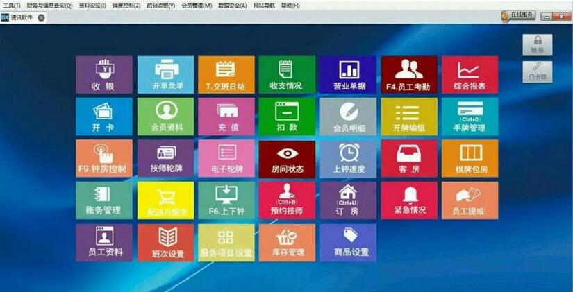 7、 有:快速派工、技师快速转房、房间快速转房、快速退钟、误下钟恢复上钟等使操作更人性化更便捷。