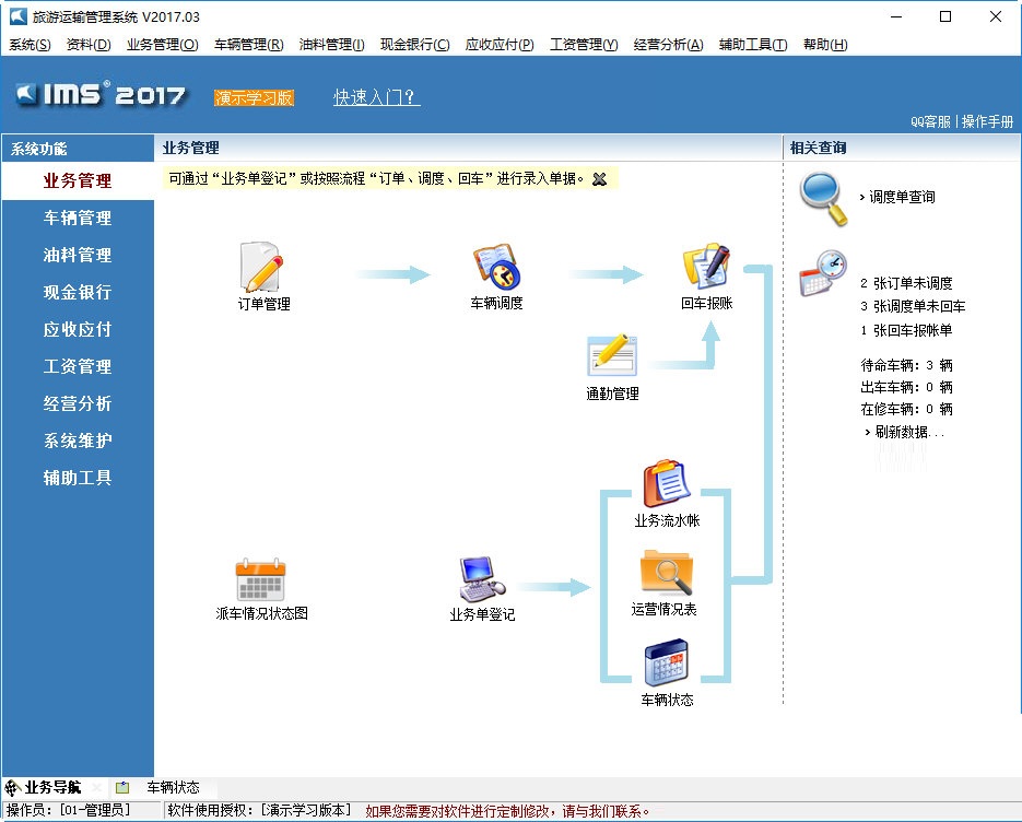 车辆状态:车辆的状态分为三种,分别是“待命状态”、“出车状态”、“维修状态”。车辆的状态会根据出车登记和回车报账自动跳转,也可以由操作人员手工改变其状态。