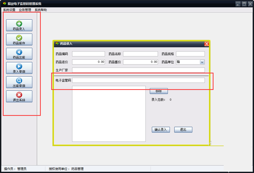 易欣电子监管码管理系统最新版是款设计相当严谨且操作极其简单的药品进销存管理工具,易欣电子监管码管理系统最新版拥有人性化的操作流程且,主要包括药品录入、药品库存、药品出库、录入查询、出库查询功能,方便用户对药品的严格监管。