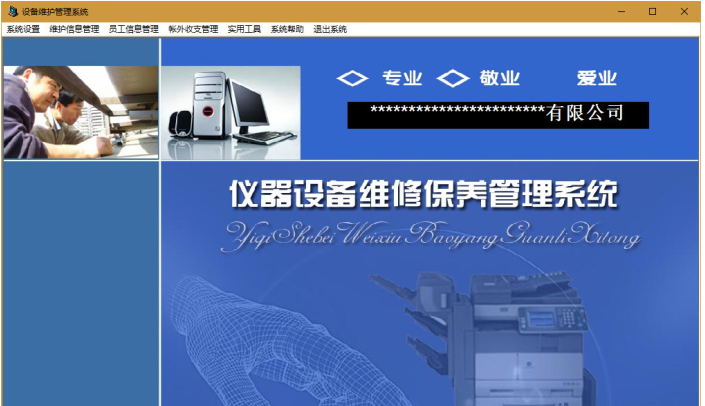 久龙仪器设备维修保养管理系统中文版是款设计相当严谨且非常出色的仪器设备维修保养管理工具,久龙仪器设备维修保养管理系统中文版是专门针对设备的维护及维修保养量身定制,适用于以设备维修、维护为主的公司或个人,包含了维护信息管理、员工信息管理、数据备份恢复、财务管理等功能。