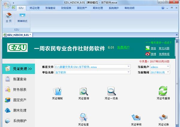 EZU一周农民专业合作社财务软件正式版是款高效专业且专门是基于Office中Excel表格的财务管理工具,EZU一周农民专业合作社财务软件正式版为用户提供了丰富的功能,其软件主要拥有Excel中的强大统计分析功能,主要包含凭证处理、账薄查询、财务报表三大模块。