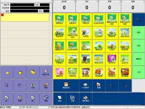 奶茶标签打印,每杯奶茶要求都标注在标签贴纸上;消费清单打印;奶茶大小杯管理,不同口味不同定价管理,会员管理支持积分、折扣、储值;触摸屏操作,可显示出品图片,操作简单掌握;支持双屏显示。