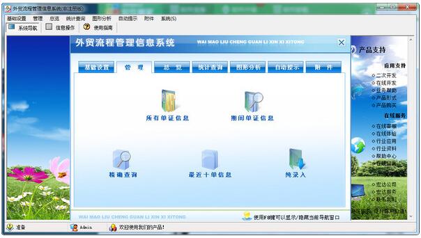 宏达外贸流程管理信息系统电脑版是款设计相当专业且实用性能稳定的外贸公司管理工具,宏达外贸流程管理信息系统电脑版拥有简洁的操作界面,其可以很好的帮助用户进行管理所有单证信息、期间单证信息、精确查询等,是一款简单便捷的软件。