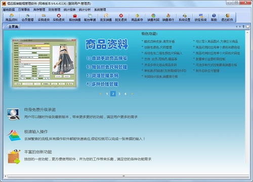 恒远服装鞋帽管理软件官方版是一款非常好用的服装管理工具,恒远服装鞋帽管理软件官方版内置了人性化的操作流程,且可以轻松的帮助用户实时掌握终端销售、库存信息,优化商品库存结构,恒远服装鞋帽管理软件使用范围广泛,且软件主要适合服装店、内衣店、鞋帽店使用。