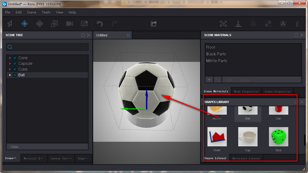 Koru允许您拍摄场景的快照。快照保存各种场景的方面,如对象位置、相机设置或材质。您可以制作不同的设计或场景布局和动画,只需单击一次就可以轻松地在它们之间切换。