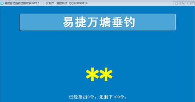 易捷垂钓园钓位抽取软件最新版是款设计相当专业且非常受到用户喜爱的垂钓园位置抽取工具,易捷垂钓园钓位抽取软件最新版拥有简洁的操作界面,能帮助用户快速选取垂钓园钓位,是垂钓园管理人员必备选位软件。