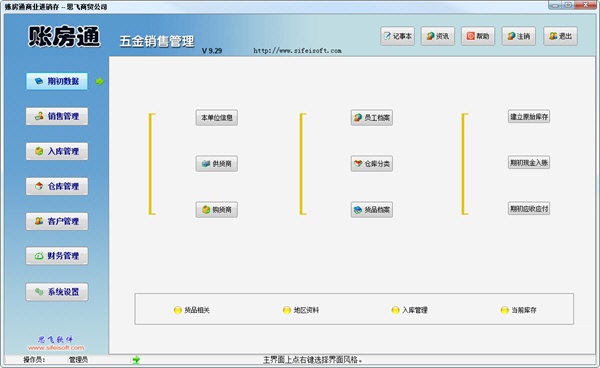 账房通五金销售管理软件电脑版是专门为了从事五金销售管理的工作人员研发设计的销售管理工具,账房通五金销售管理软件电脑版拥有简洁的操作界面,丰富的功能,其软件为用户提供一些初步的计算机化的管理,在降低成本的同时,提高了企业的工作效率。
