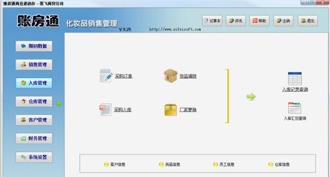 账房通化妆品销售管理官方版是款设计相当专业且主要适用于化妆品行业设计的管理工具,账房通化妆品销售管理官方版主要为广大用户提供新进货品管理和销售,旧货品的退换和返厂管理,打印报表,货品定价,采购定单,扩零配整,权限管理,多账套管理,现金管理等功能于一体,位管理者的管理带来了方便。
