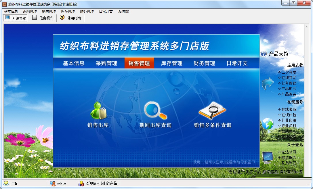 3、销售管理:销售出库,期间出库查询,销售多条件查询。
