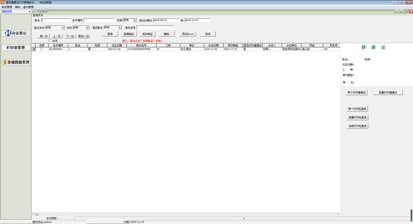 通用健康证打印管理软件电脑版是款针对疾控中心打造的健康证管理工具。通用健康证打印管理软件电脑提供的服务功能全面,可以帮助企业简单轻松的管理健康证。这款软件们只需要将个人信息录入就可以打印出健康证,主要为用户提供便捷的健康证登记、期间发证查询等,十分方便,操作也非常简单。