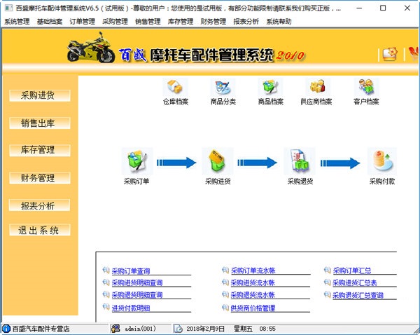 百盛摩托车配件管理系统最新版是一款功能全面的摩托车相关配件销售管理软件,百盛摩托车配件管理系统最新版拥有配件采购、销售、库存管理和财务管理等功能,有了百盛摩托车配件管理系统官方版能够减少基础信息的录入次数,使操作人员的工作量大大减少。