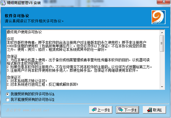1、在本站下载精细商超管理软件最新版压缩包,然后进行解压,解压后,双击exe程序,进入安装界面,然后点击下一步