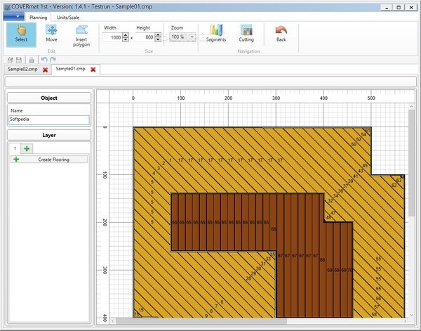 COVERmat显示了一个用户友好的界面,但其控件与其他类似应用程序有所不同,因此您需要花费几分钟的时间来掌握它。浏览该应用程序的功能后,您很快就会发现它可以用来定义材料,创建地板的实际布局图,然后显示所需地板段的形状和尺寸。