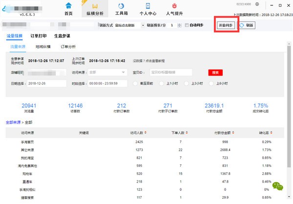 如果没数据,请检查生意参谋同步时间与上次订单同步时间