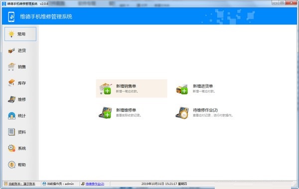 维德手机维修管理系统最新版是款针对大小型手机维修店铺打造的管理工具。维德手机维修管理系统最新版便于成本和利润,界面简洁,功能一目了然。这款软件操作简单易上手只需要您动动鼠标,敲几个数字就可以轻松完成账务的录入、查询和统计。其有着进货、销售、维修、库存查询以及统计分析功能。