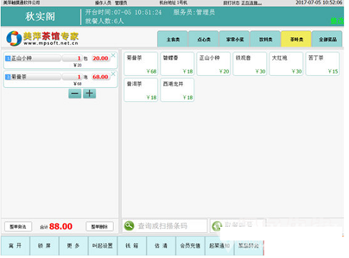 8、支持结账功能,美萍茶馆专家可以连接到多种结账端口