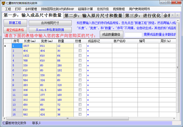 并且系统要求输入原片的数量,在优化过程中,如果该原片的数量使用完,系统就不会再用该原片进行优化.