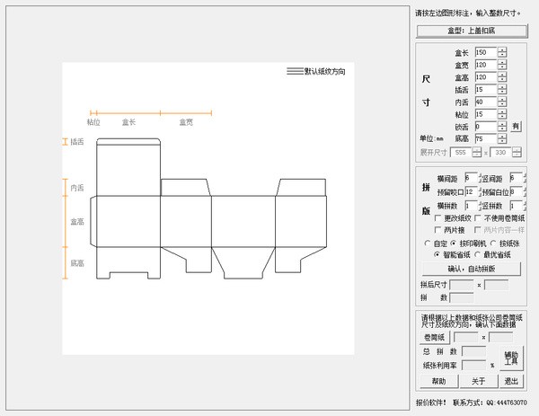 印刷拼版助手电脑版是款提高用户工作效率用户拼版布局印刷品的拼版助手。印刷拼版助手电脑版采用自动化拼版,为用户计算出最佳的开纸数量与拼版数量,只要选择盒型,输入尺寸即可生成拼版尺寸,代替人工完成重复繁琐的拼版及计价工作,预防人工造成材料浪费。