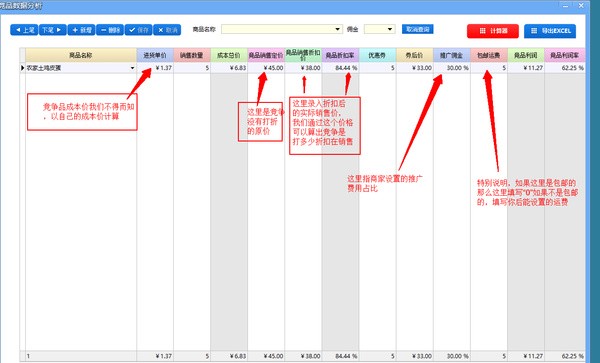 3.查看竟品信息,并录入相关数据,算出竞品的相关数据