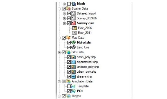Scatter Module:创建和编辑离散数据。过滤点、平滑数据集和将折线添加到TINs中。从离散集合到网格插入标量和矢量数据。