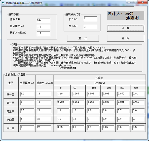 3、本程序不考虑计算深度zn的确定,所有土层都将计算,最多可分层99层。