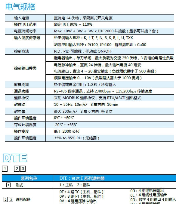 ,所以必须再购买一组温控器,造成不必要的浪费。 DTE 系列可弹性使用 I/O 模块。若有扩展 I/O