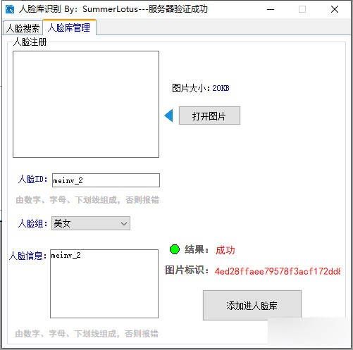 人脸库识别最新版是一款人脸库识别软件,人脸库识别最新版可以通过训练识别图片人物信息并返回信息,通过训练识别功能能够判定图片人脸组,添加进人脸库之后完善软件的数据!