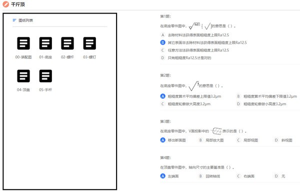“中望机械工程识图能力实训评价软件”包含了1600+道题目,400+张机械图纸,不仅题目和图纸完全配套,而且全部由国内权威机械制图专家共同参与开发、审核、校对,确保题目和图纸的系统性和规范性,并且符合职业学校机械制图教学大纲。