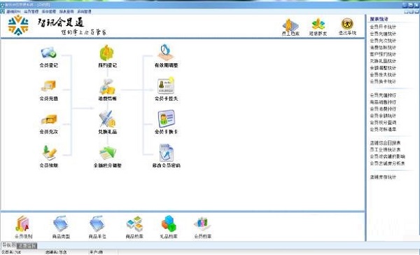 1、会员管理:会员注册登记、会员卡挂失、延长有效期、修改卡密码等会员资料管理流程。