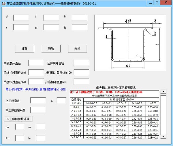 圆筒状拉伸零件展开计算工具在windows XP/7/8等多个系统上均有测试,可全功能使用。