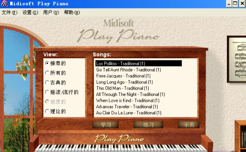2、尽管软件本身已提供了相当多的练习曲目,你还可以导入任意标准MIDI文件并将其转换为MidiSoft