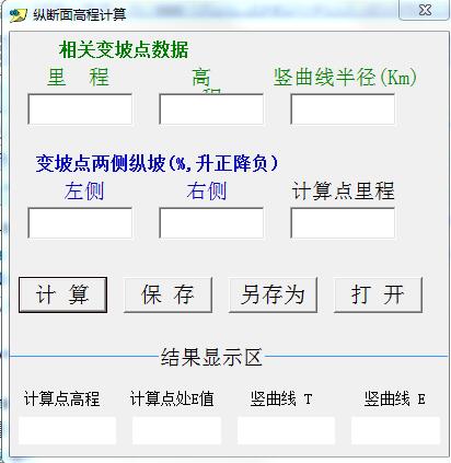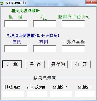 纵断面高程计算工具最新版是一款非常专业的纵断面计算软件,纵断面高程计算工具最新版拥有简洁的操作界面,内置强大的功能,其主要用于计算线路竖曲线计算高程,可以计算竖曲线内的任一点高程,只需输入相关变坡点数据和变坡点两侧纵坡就可快速计算出高程E值和竖曲线T值,是一款非常方便实用的软件。