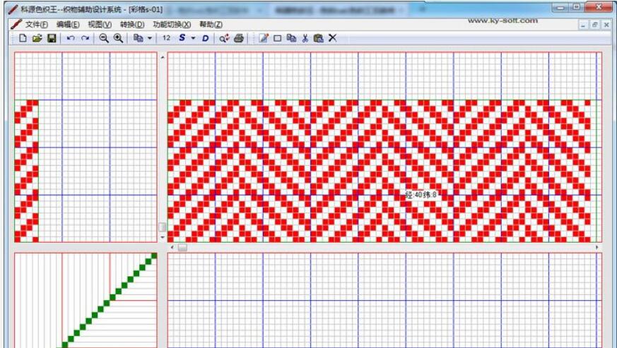 自由快捷的进行组织设计,包括一般组织、变化穿筘小提花、经纬起花等,自动生成纹板和穿综图。