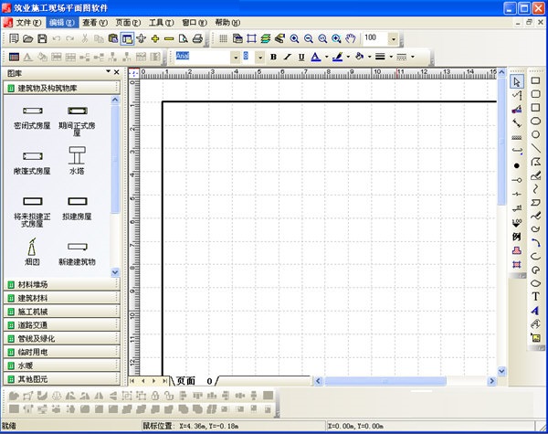 Visio样式的图库,即可用鼠标直接将所需的图形组件拖拽到需要的位置,大大提高了图库元素的使用效率。软件提供了建筑企业使用的图元库(根据国家规范)有地形地貌、动力设施、堆场、交通设施、控制点、施工机械以及其它。使用它们可以大大减轻工作量。