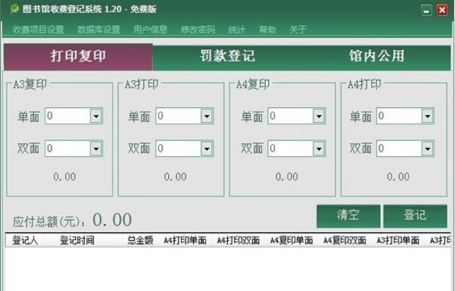 图书馆收费登记系统中文版是一款设计界面简洁大方,功能全面,且专业性强的收费管理软件,图书馆收费登记系统中文版为用户提供了打印复印、罚款登记、馆内公用三大板块,支持收费项目设置、数据库设置、用户信息、统计等功能,在一定程度上,提高了工作效率。