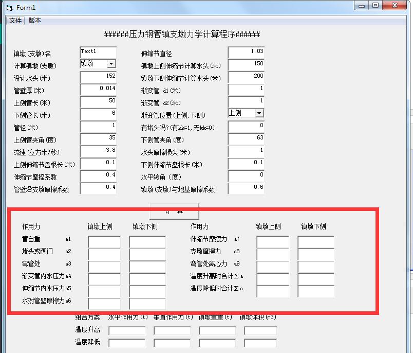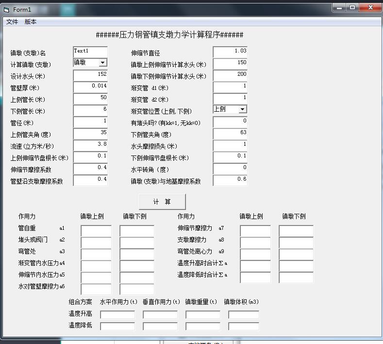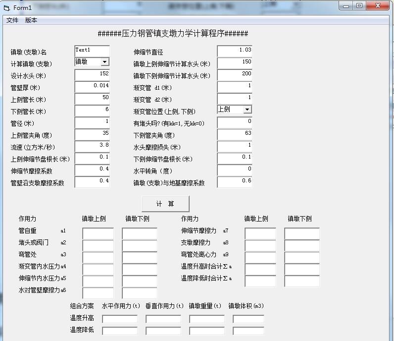 压力钢管道镇支墩力学计算程序最新版是一款界面简洁大方,操作简单的桥墩计算软件,压力钢管道镇支墩力学计算程序最新版户输入镇墩的参数点击计算就可得出镇墩上侧和镇墩下侧的不同参数,给出组合方案,是一款非常不错的软件。