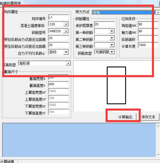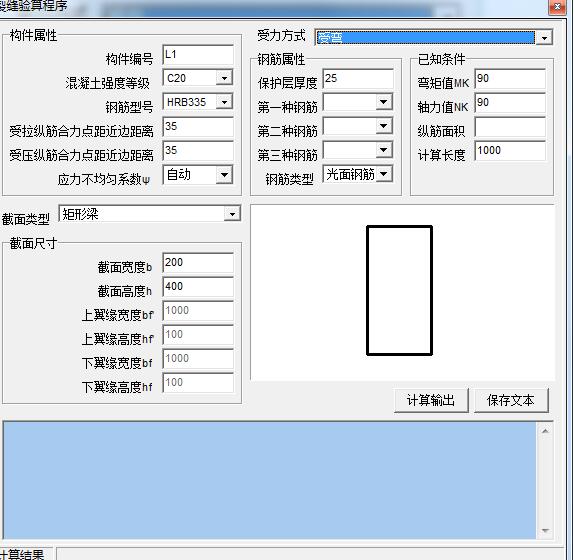 输入构件属性、截面尺寸和钢筋属性,选择截面类型就可计算出裂缝的相关数据了。