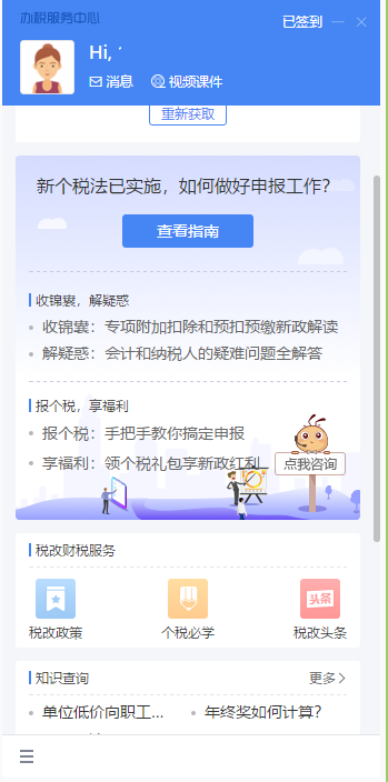 实时提供最新资讯、税务专家深入解读,让您懂个税更懂生活提供24小时智能咨询服务,让天下没有难解的税。