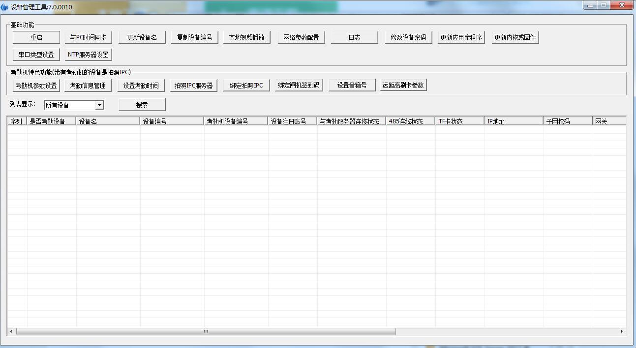 厦门神州鹰设备管理工具最新版是一款界面简洁,功能强劲实用的专业设备管理软件,厦门神州鹰设备管理工具最新版内置的功能相当的全貌,可以修改应用库程序、更新内核或固件、更改设备名、本地视频播放、考勤机参数设置、绑定拍照IPC、设置考勤时间等,适用于所有设备、考勤设备和监控设备,适用于神州鹰多种型号的设备,是一款用途十分广泛的软件。