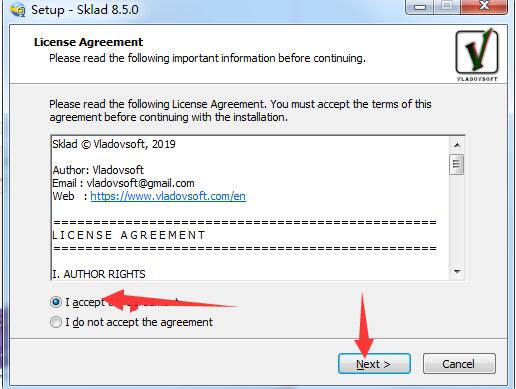 2、阅读许可协议内容,勾选“I accept the agreement”