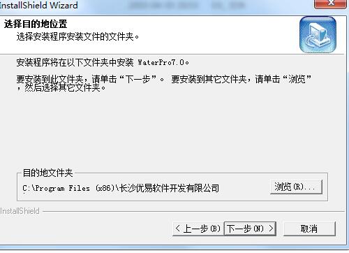 4、选择WaterPro7.0目的地位置,点浏览进行修改