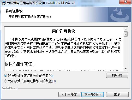 2、阅读力诺发电工程经济评价软件许可证协议,勾选“我接受...”
