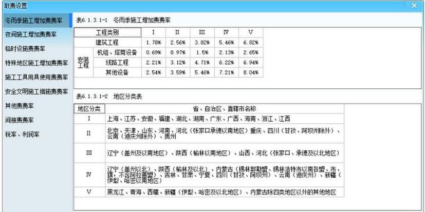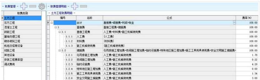 取费管理窗口如下图所示,可针对具体某取费类别如石方工程进行个别的费率调整。