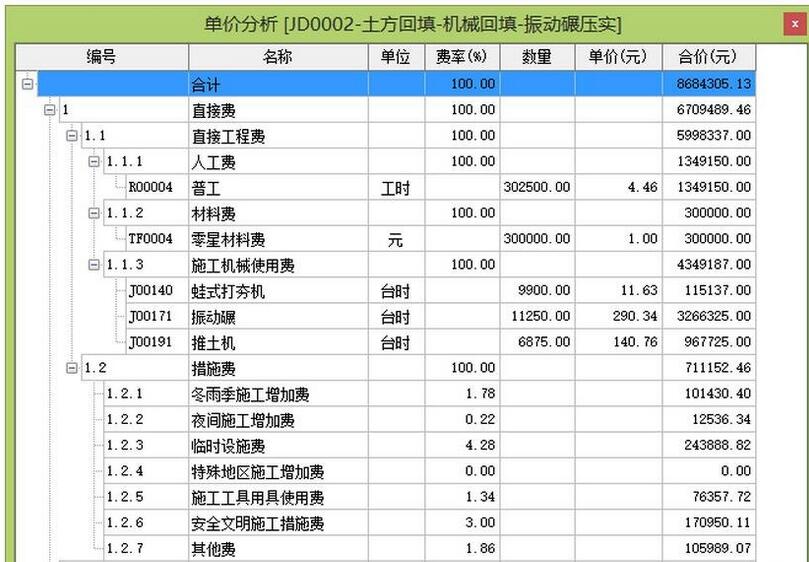 安装和建筑工程概算套用定额后会自动形成安装和建筑单价,单价分析表根据取费类型进行分析,如下图所示: